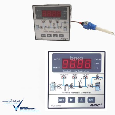 کنترلر تابلویی ROC مدل ۲۳۱۵ با طراحی خاص جهت عملیات تصفیه آب، در دستگاههای تصفیه آب صنعتی مبتنی بر اسمز معکوس (RO) بوده که این عملیات را به صورت مطمئن و خودکار انجام میدهد. این دستگاه ترکیبی از کنترلگر فرآیند و آنالایزر هدایت آب است که پارامترهای کلیدی تولید آب، از جمله هدایت/کیفیت آب محصول (EC/TDS) و دما به صورت لحظهای مانیتور و رصد کرده و براساس مقادیر تنظیمشده، فرمانهای کنترلی (پمپ، شیر فلاشینگ، آلارمها) پارامترهای لازم را صادر مینماید.